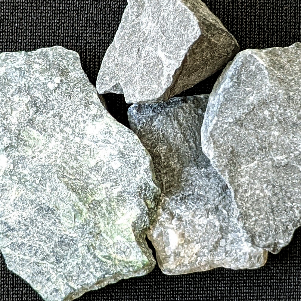 特徴:全体に暗緑色緻密で色の淡い部分や白い部分などが不規則に混ざっていることが多い |