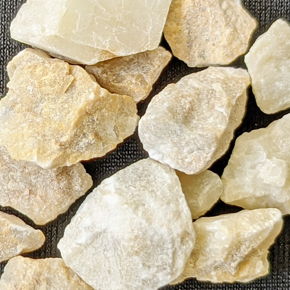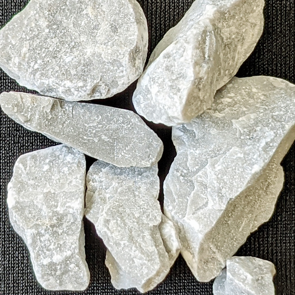 特徴:結晶した石灰石で純度が高く敷砂利として庭園や盆栽等に使用されている |