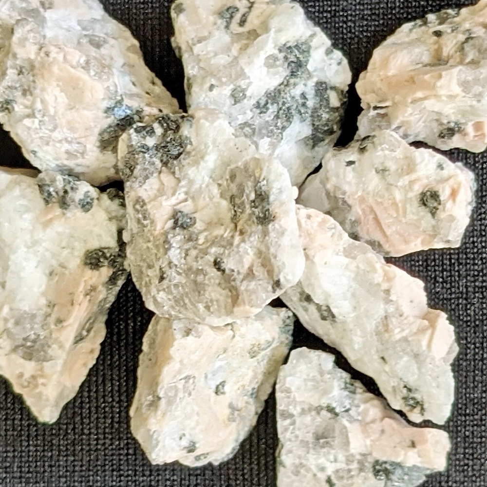 特徴:花崗岩はごま塩石とよばれることがあるように、主にい石英、長石、黒雲母の3つの鉱物により構成される |