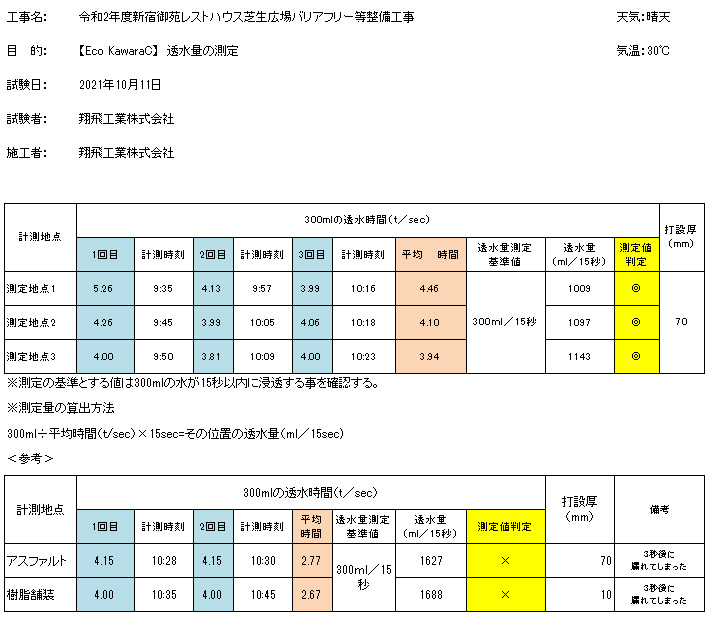 ■施工後は透水試験を実施 Eco Kawara 透水性舗装 は高い透水性を誇る舗装材です