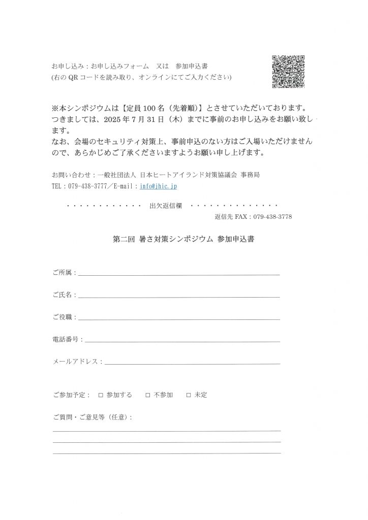 「第二回 暑さ対策シンポジウム」 を開催する運びとなりましたので、下記の通りご案内申し上げます。