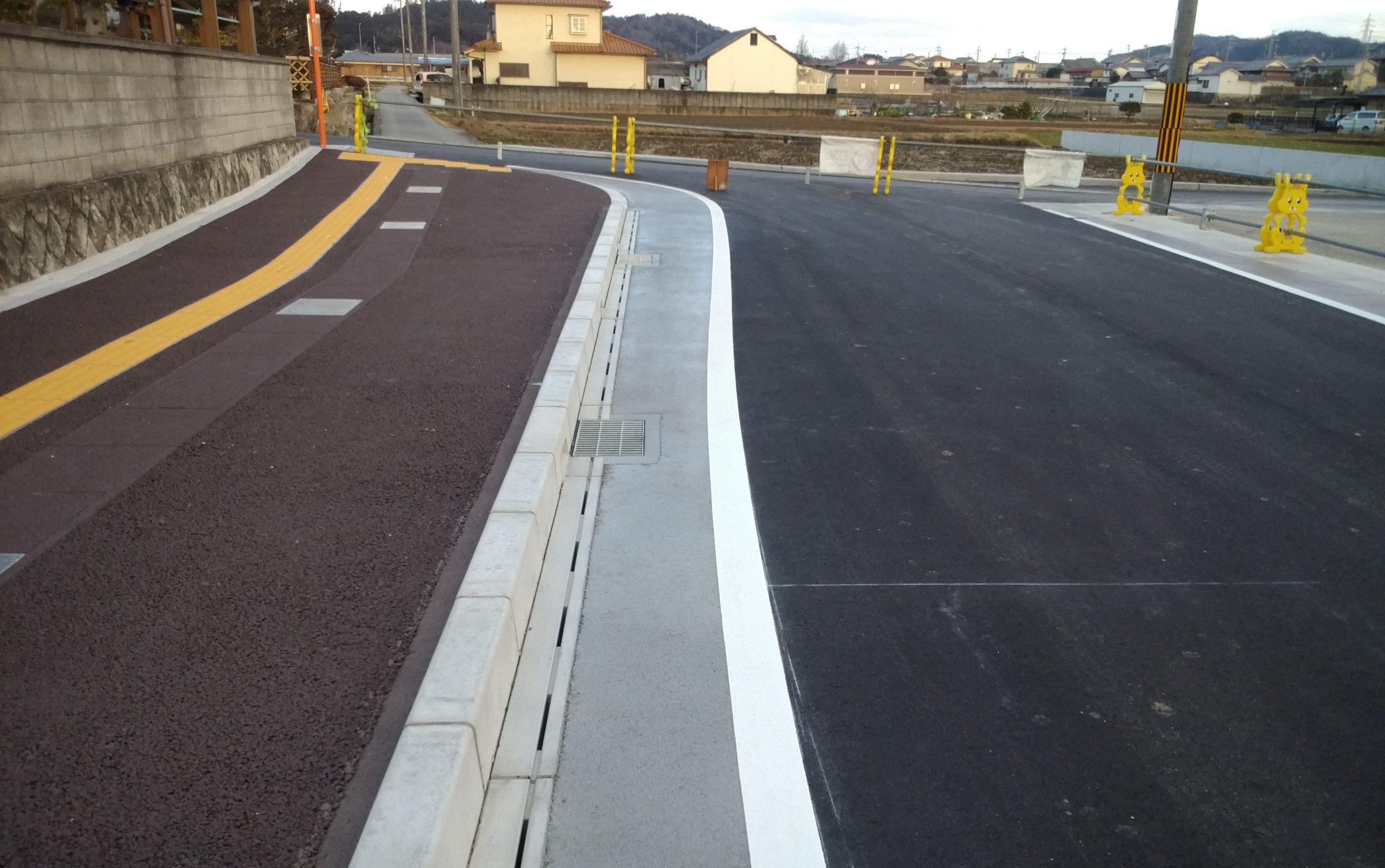 もちむぎで有名な兵庫県福崎町のメインストリートの舗装工事を行いました。福崎町は柳田國男の出生地として有名で、河童や天狗など妖怪もたくさん生息しております。