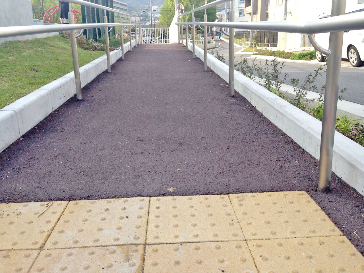 「Eco Kawara コート」を使用して公園の園路を施工しました。