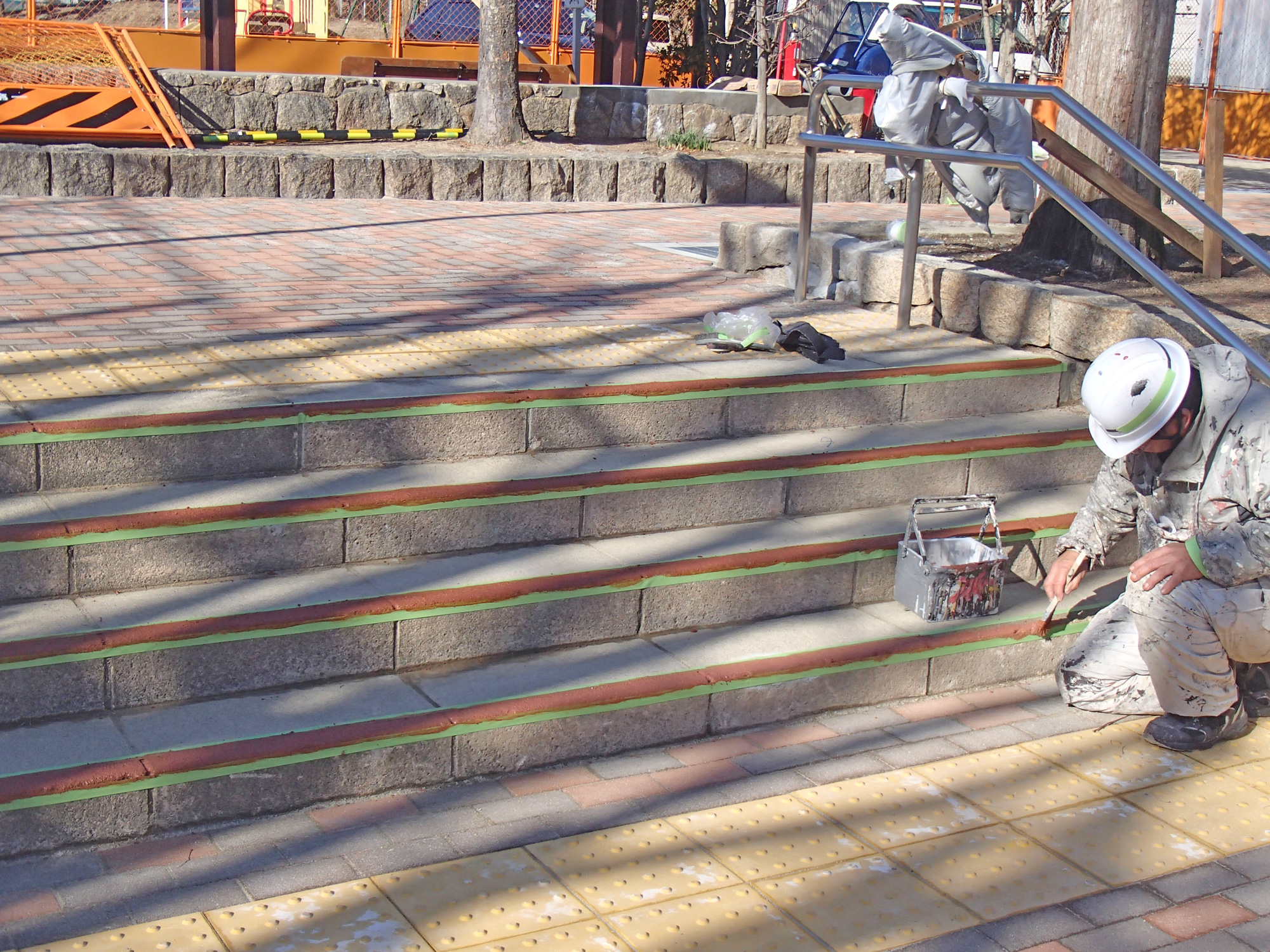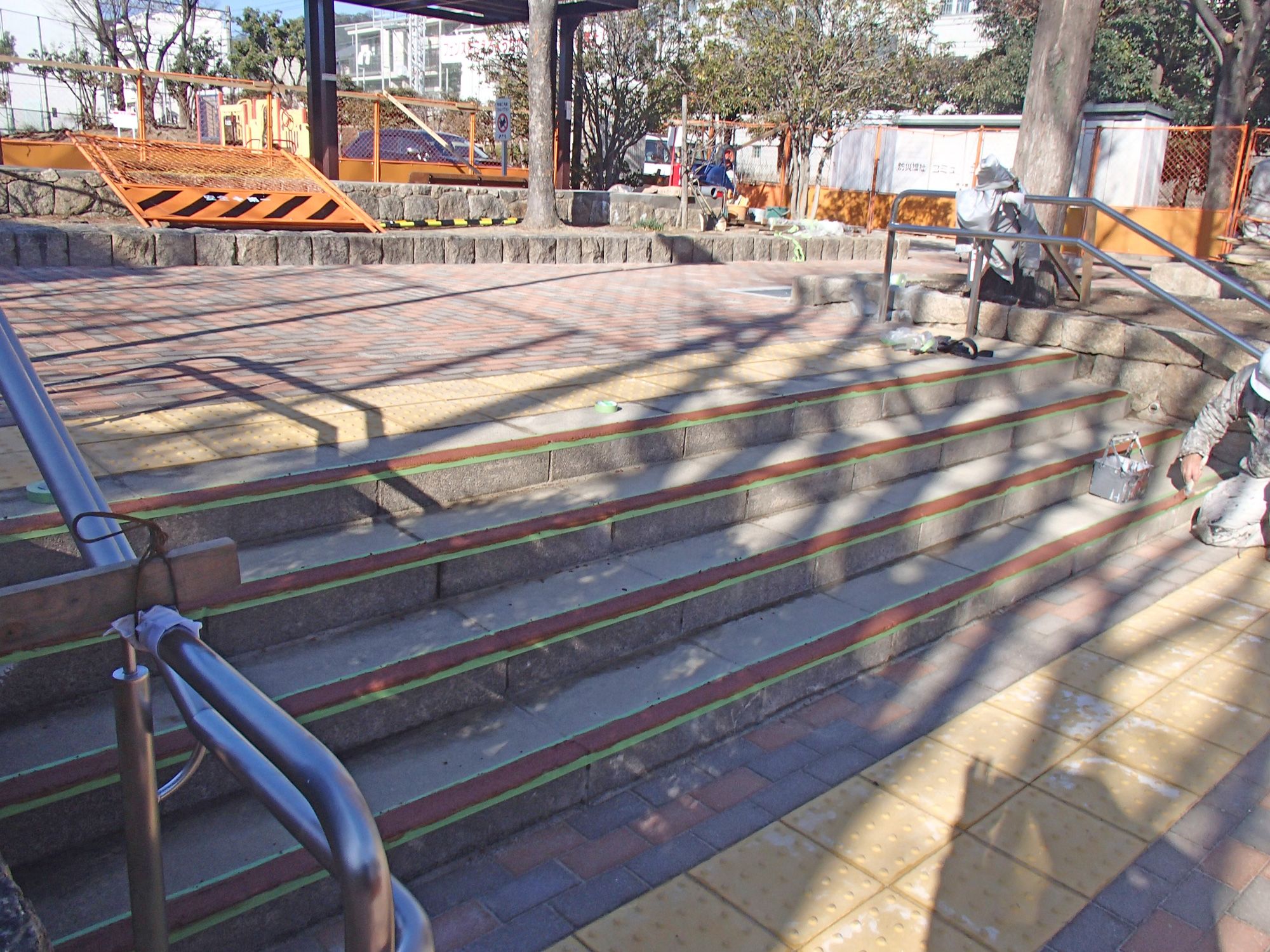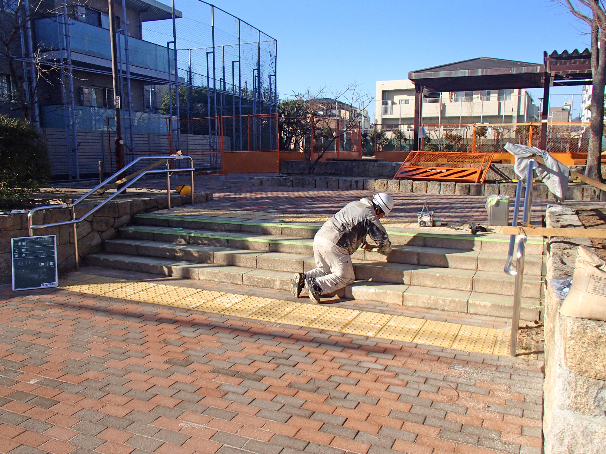 神戸市東灘区の公園改修工事において、階段段鼻部に「Eco Kawara コート」が採用されました。