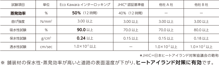 ● 骨材が廃瓦のためリサイクル性が高く循環型社会に貢献できる● 透水性に優れ、水溜りが出来にくく誰でも歩きやすい● 透水性・保水性に優れ、局地豪雨による雨水流出抑制効果のある舗装材です● 保水性に優れ、蒸散作用によりヒートアイランド現象を抑制
